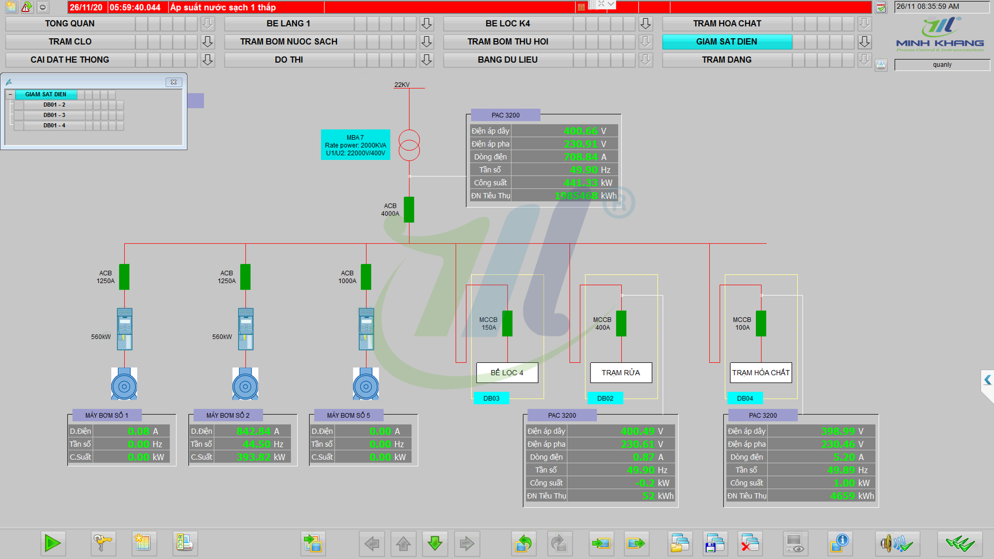 - Hệ thống trung tâm phụ trách điều khiển hoạt động theo công nghệ ngành nước